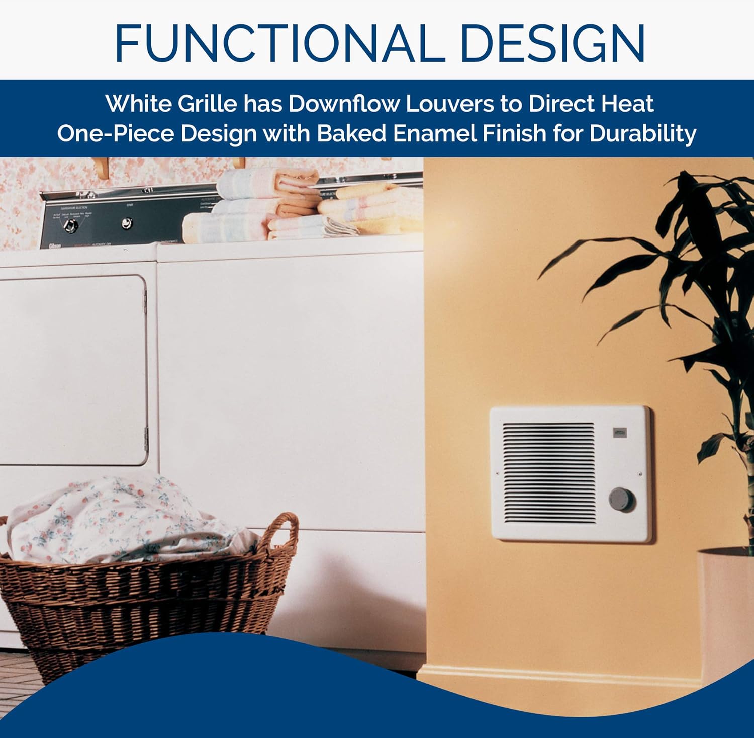 This wall heater delivers quick warmth and is ideal for space-constrained areas. The durable construction ensures long-lasting performance, making it suitable for both residential and light commercial settings.