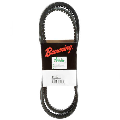 The Browning BX106 is a TorqTitan Gripnotch belt designed for high performance in HVAC applications. This belt features a pitch length of 107.8 inches and outside length of 109 inches, making it suitable for various motors and drive systems.