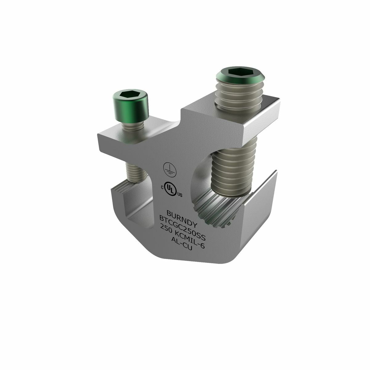 The BURNDY BTCGC250SS is an aluminum ground tray clamp suitable for connecting ground wires sized from number six to two hundred fifty Kcmil. Designed for outdoor use, this clamp works well with various cable tray systems, accommodating both inside and outside flange designs. The durable tin plating finish enhances its resistance to corrosion.