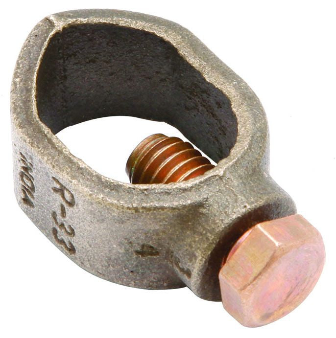 The BURNDY GRL6 is a light duty economical ground rod clamp designed for use with conductors sized between two and ten AWG. This clamp is suitable for a rod size of three-fourths inches and is ideal for direct burial applications. Its copper alloy construction ensures durability and effectiveness in various grounding tasks.