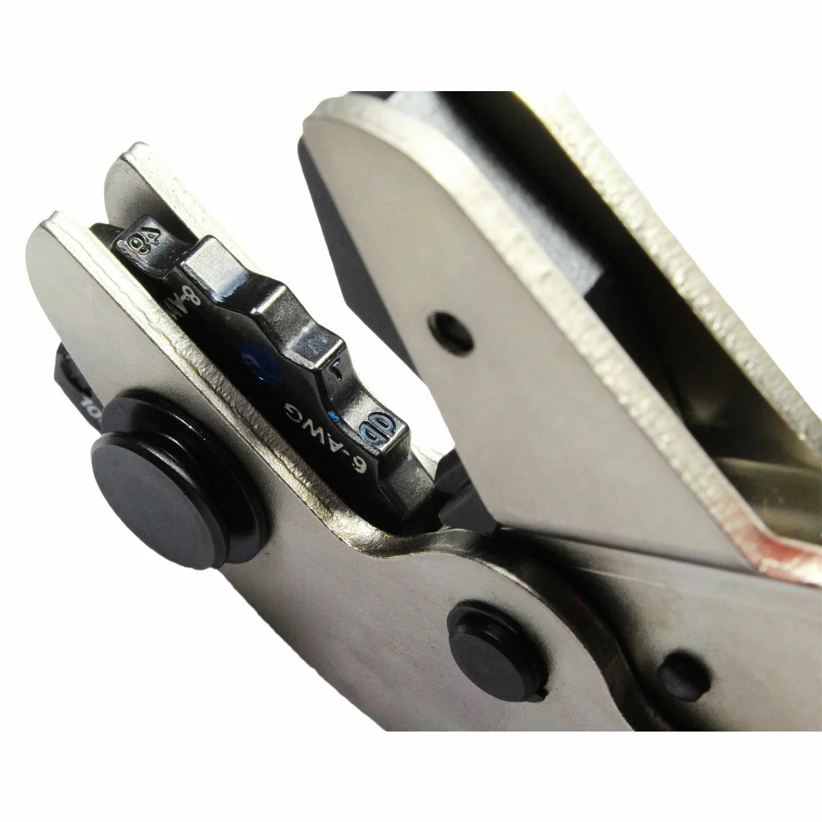 This crimper is essential for professionals in telecommunications, construction, and industrial applications. It provides precise crimping results with a ratchet mechanism that ensures consistency and reliability.