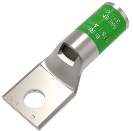 The Burndy YA1CLBOX is a 1 AWG copper cable lug with a one-hole design. This product is suitable for wire termination applications up to thirty-five kilovolts. It includes an inspection window and is ideal for various electrical installations.