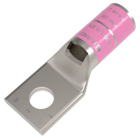 The BURNDY YA25L6BOX is a compression cable lug designed for reliable wire connections. It is made of copper and supports a voltage rating of thirty-five kilovolts. This product features a one-hole design suitable for a half-inch stud size, offering a secure fit for diverse applications.