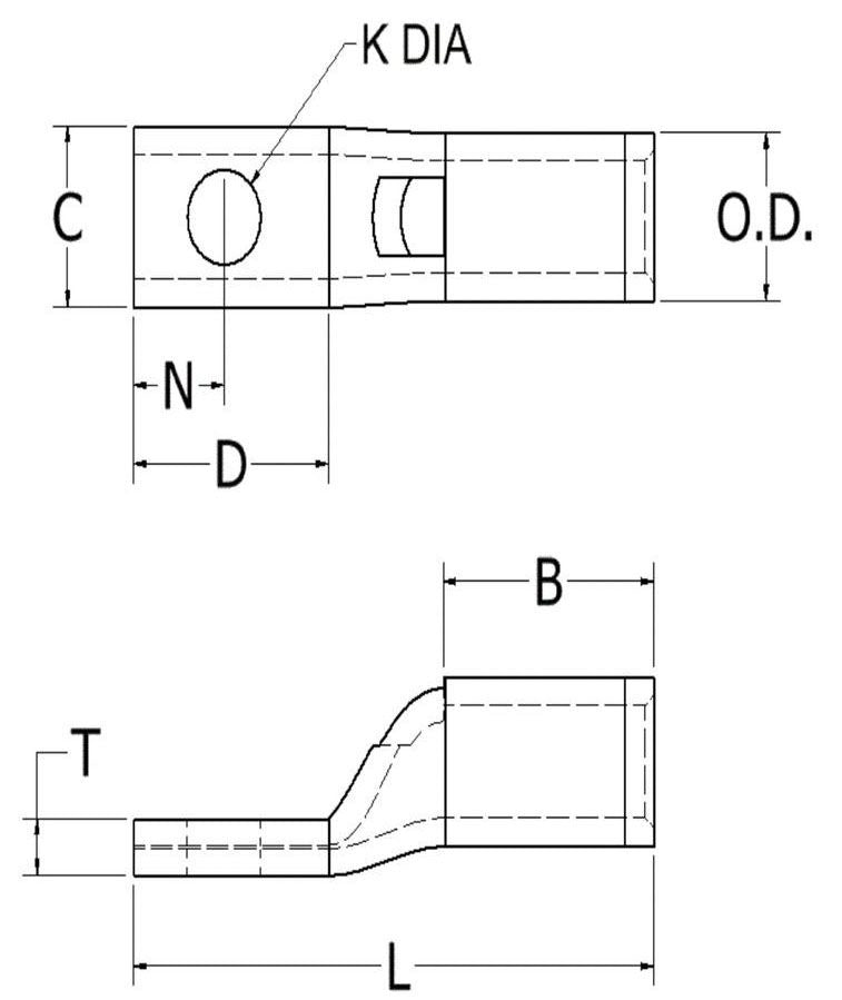 The BURNDY YA28LNT38 is a compression cable lug designed for effective wire termination. This product is suitable for use with 4/0 AWG stranded copper conductors. It features a standard barrel design with an inspection window for added functionality.