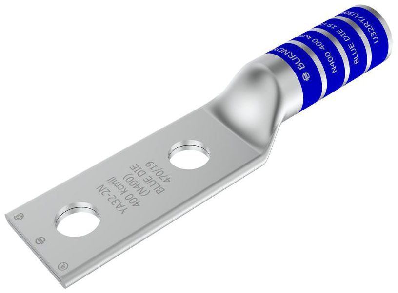 The BURNDY YA322N is a compression cable lug designed for reliable wire terminations. It features a copper conductor material and is suitable for applications requiring a voltage rating of up to thirty-five kilovolts. This product is UL and CSA approved, ensuring high-quality standards.