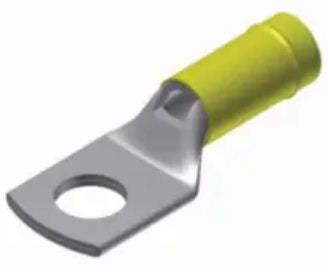 The Burndy YAEV10T3 is a copper terminal designed for various wire applications. The terminal supports sizes from twelve to ten AWG and fits a quarter-inch stud. It provides a secure connection due to its electro-tin plating. This product is ideal for high vibration environments, such as marine and aircraft applications.