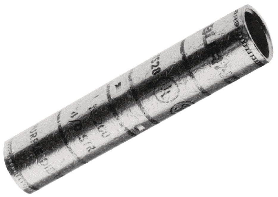 The BURNDY YS26 is a compression cable splice designed for use with 2/0 AWG stranded copper conductors. This particular splice features a long barrel with an internal chamfer to facilitate easy insertion of wires. It is suitable for applications that require a reliable connection and is rated for voltages up to thirty-five kilovolts. The tin-plated finish of the splice provides additional protection against corrosion.