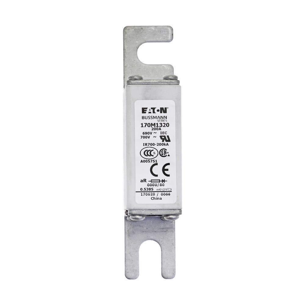 The Bussmann 170M1320 is a Type U/80 high-speed fuse designed for electrical protection in various applications. This fuse has a current rating of 200 A and a voltage rating of 690 VAC. It supports an interrupt rating of 200 kA, ensuring robust protection against overcurrent. The design integrates a square body made from ceramic, optimized for mounting on DIN 43 620 systems.