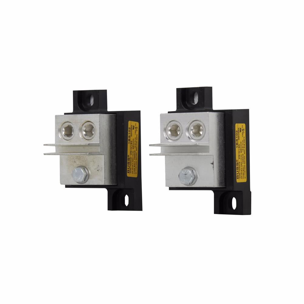 The Bussmann 1BS102 is a modular universal fuse block designed for electrical applications. This fuse block operates at a voltage of 600 V and can handle a current of 400 A. The product supports wire sizes ranging from six AWG to 250 kcmil and features a single pole with screw connections. This unit is suitable for stud mounting and operates effectively within a temperature range of up to 150 degrees Celsius, making it ideal for demanding environments.