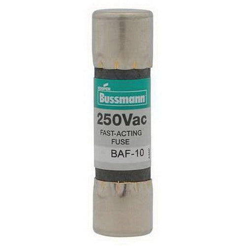 The Bussmann BAF-3 is a fast acting fuse rated for 3 Amps and 250 Volts AC. This fuse is suitable for various applications including lighting circuit protection and meter circuits. Its design features a ferrule connection and nickel-plated brass endcaps, providing reliable performance in electrical systems.