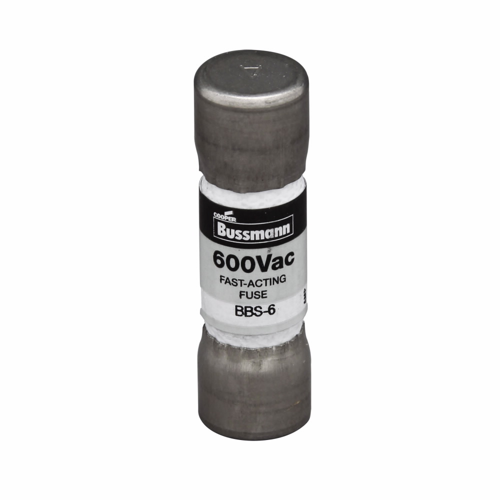The Bussmann BBS-5 Midget Fast Acting Fuse is designed for circuit protection. It has a rating of five amps and features a non-indicating design. This fuse employs ferrule end connections, ensuring a solid fit in various applications. Rated for a maximum voltage of six hundred volts, it can handle up to ten kiloamp interrupt capacity, making it suitable for demanding environments.