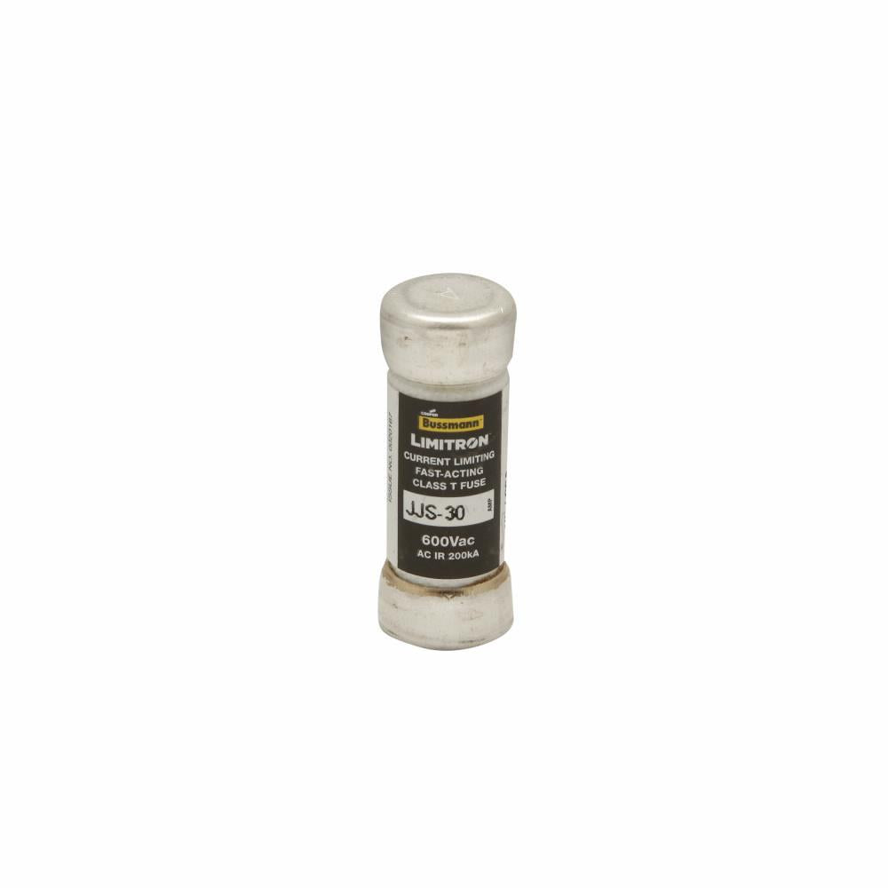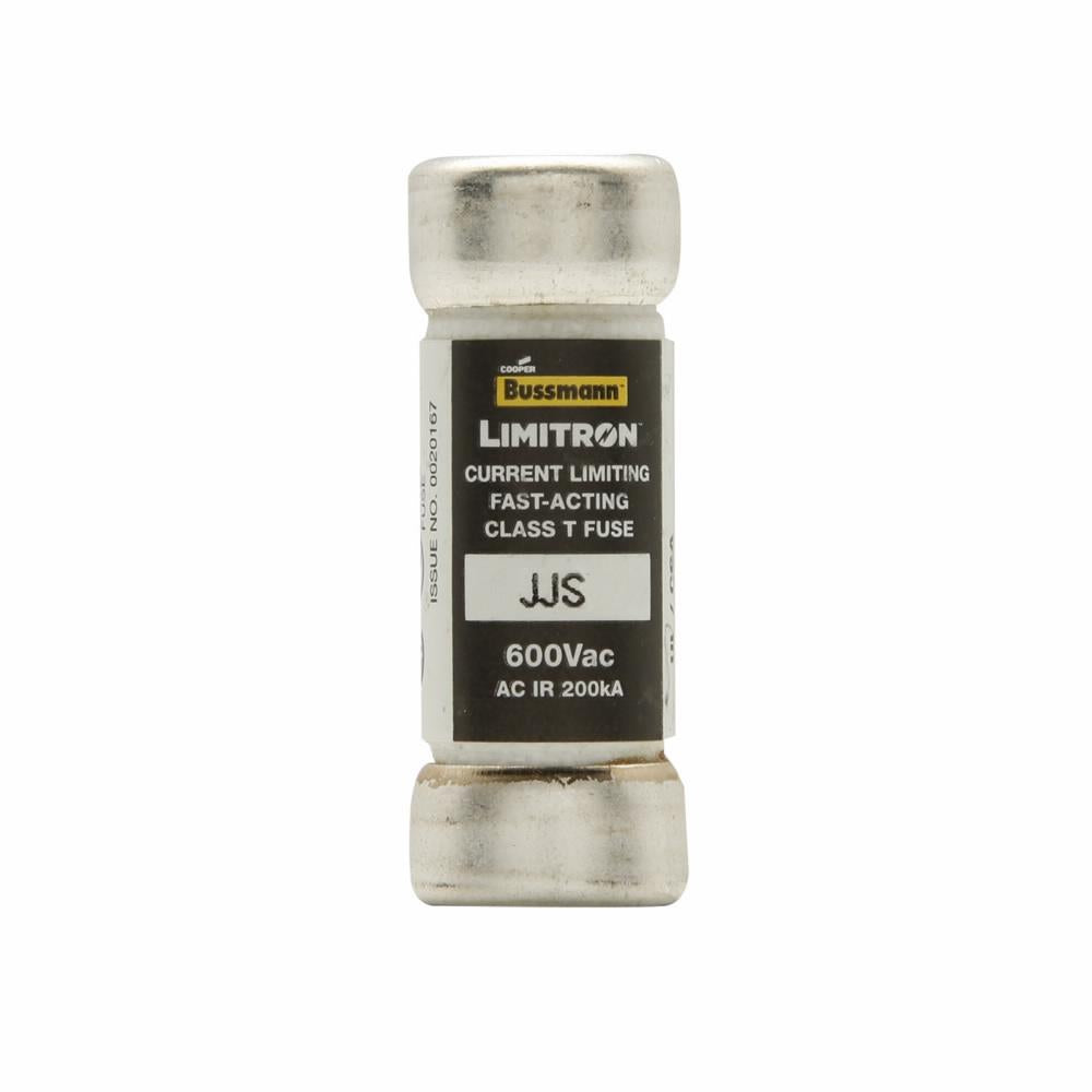 The Bussmann JJS-15 is a Class T Tron fast acting fuse from Bussmann. This fuse is designed for current limitation and offers protection for VFD lines. With a rating of fifteen amps, the JJS-15 is built to withstand up to 200 kAIC at 600 volts.