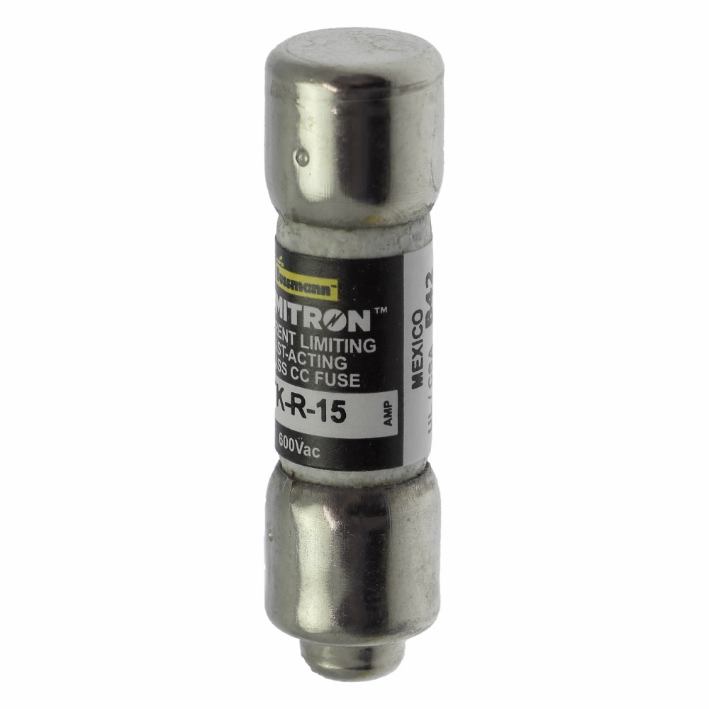 The Bussmann KTK-R-15 is a 600V midget fuse designed for efficient operation in various electrical applications. This fast-acting fuse features a rejection style, ensuring compatibility with standard fuse holders while preventing the insertion of lower-rated supplementary fuses. It is ideal for specialized circuits and industrial control.