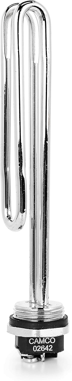 The Camco 02643 is a 4500 watt, 240 volt screw-in foldback water heater element. This element is designed for use in electric water heaters, providing a direct replacement for worn or faulty elements. It is suitable for tanks with a minimum diameter of nine inches. This element includes a gasket for easy installation.