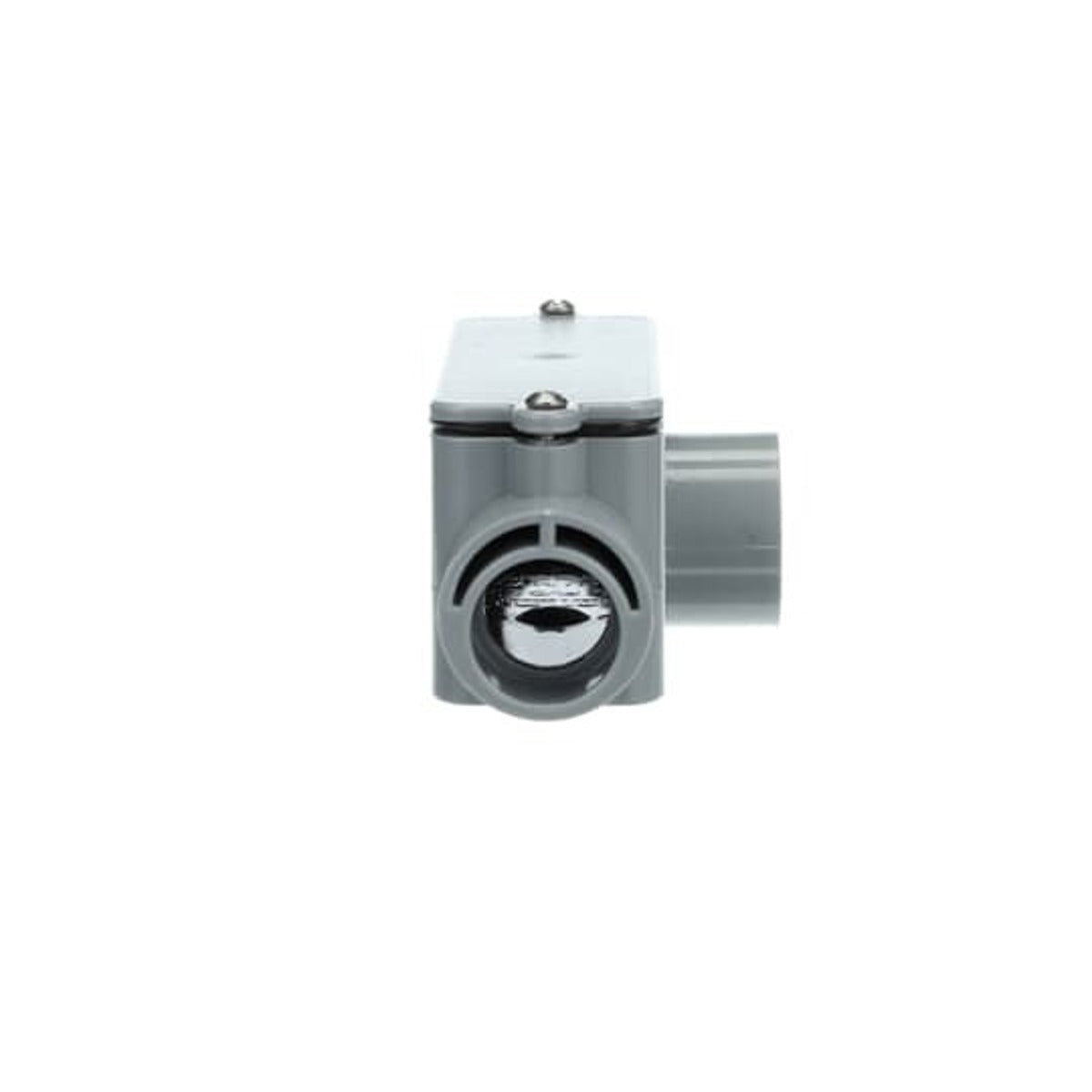 The CARLON Type T Conduit Body, MPN E983E, is designed for efficient wiring and maintenance. This conduit body has a volume of twelve cubic inches and is suitable for use with three-quarter inch conduit. It is constructed from PVC and features a length of six and seven-eighths inches. This product is compatible with Schedule 40 and 80 conduit applications.