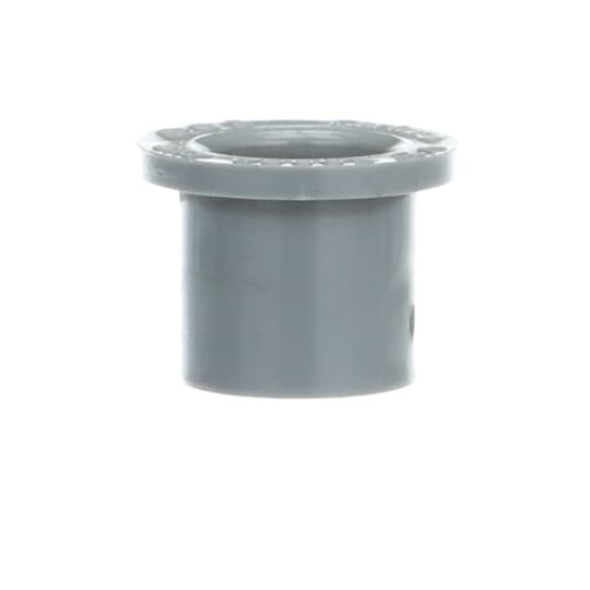 The CARLON E996D Box Adapter connects non-metallic conduit to electrical enclosures. It is designed for use with Schedule 40 and 80 conduit systems. The adapter has a length of two and seven-thirty seconds inches and an outer diameter of zero point eight-four zero inches. This product is made of PVC material and is gray in color.