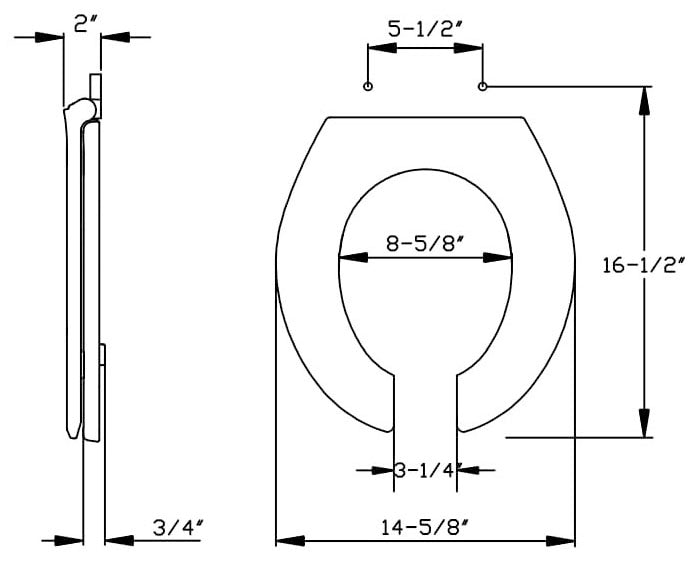 The Centoco 460STS-001 is a heavy-duty toilet seat designed for commercial applications. This open front, round toilet seat measures fourteen and five-eighths inches in length and sixteen and one-half inches in width. It is made of durable polypropylene with a white finish, making it suitable for various environments.