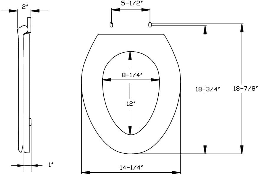 Centoco 950SCCT-001 is a closed front, elongated toilet seat. It measures fourteen and one-fourth inches in length and eighteen and seven-eighths inches in width. This product is made from molded plastic and comes in white color. The toilet seat includes a cover and features a gasket, along with two plastic and stainless steel bolts and hardware. It is designed for residential use.
