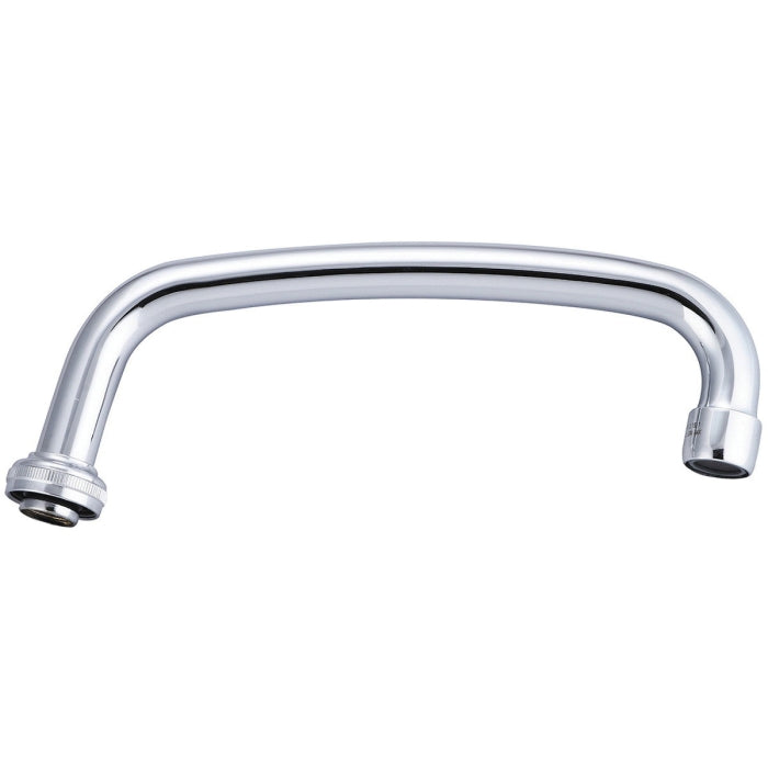 The Central Brass SU-363-RA 8 inch Swivel Tube Spout with Aerator is designed for functionality and durability. This polished chrome spout ensures efficient water flow for various kitchen tasks.