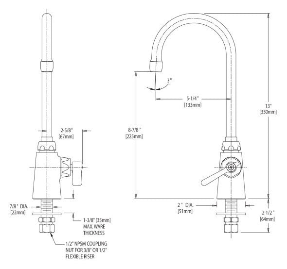 Spout Dimensions: 13 Inch Height x 8-7/8 Inch Clearance x 5-1/4 Inch Reach