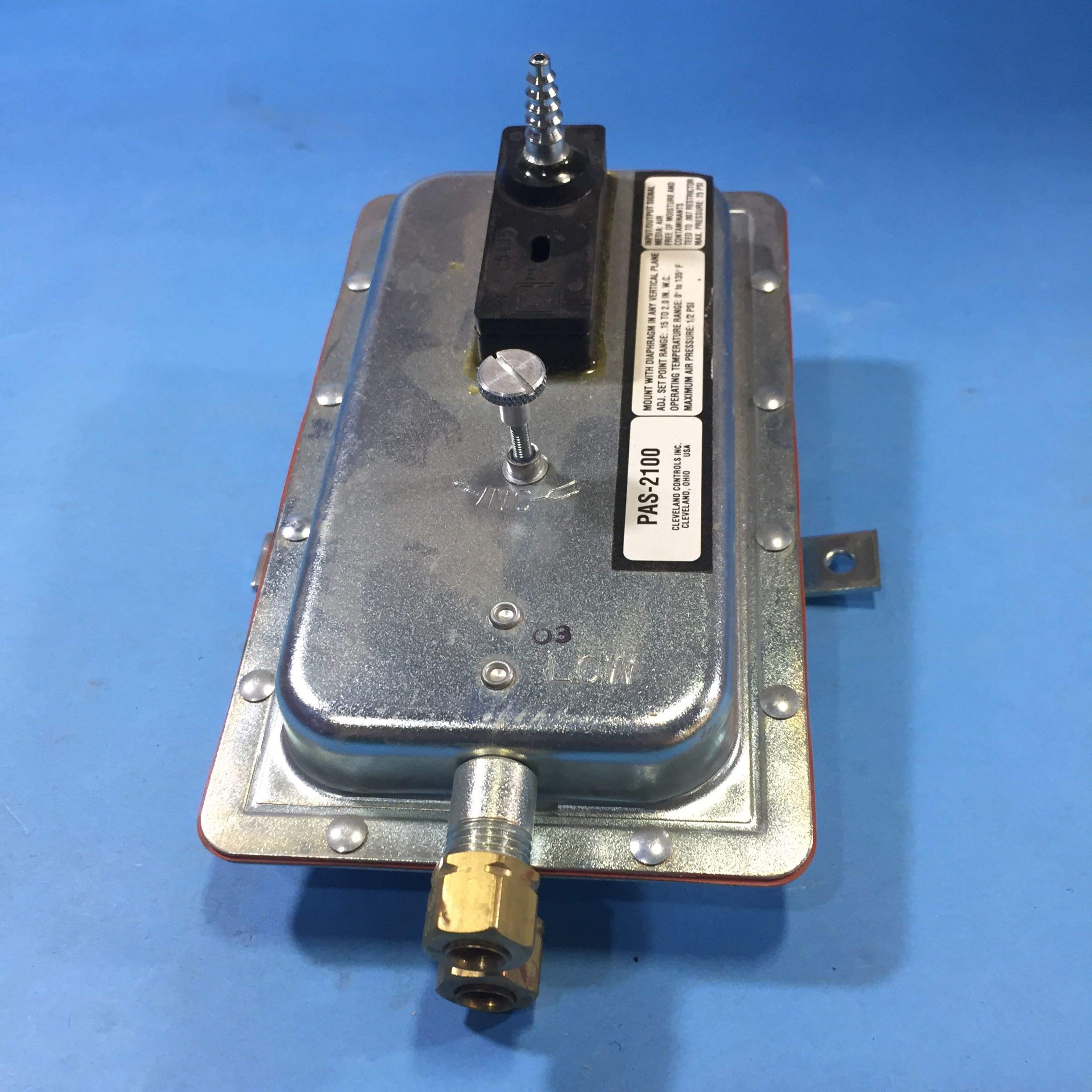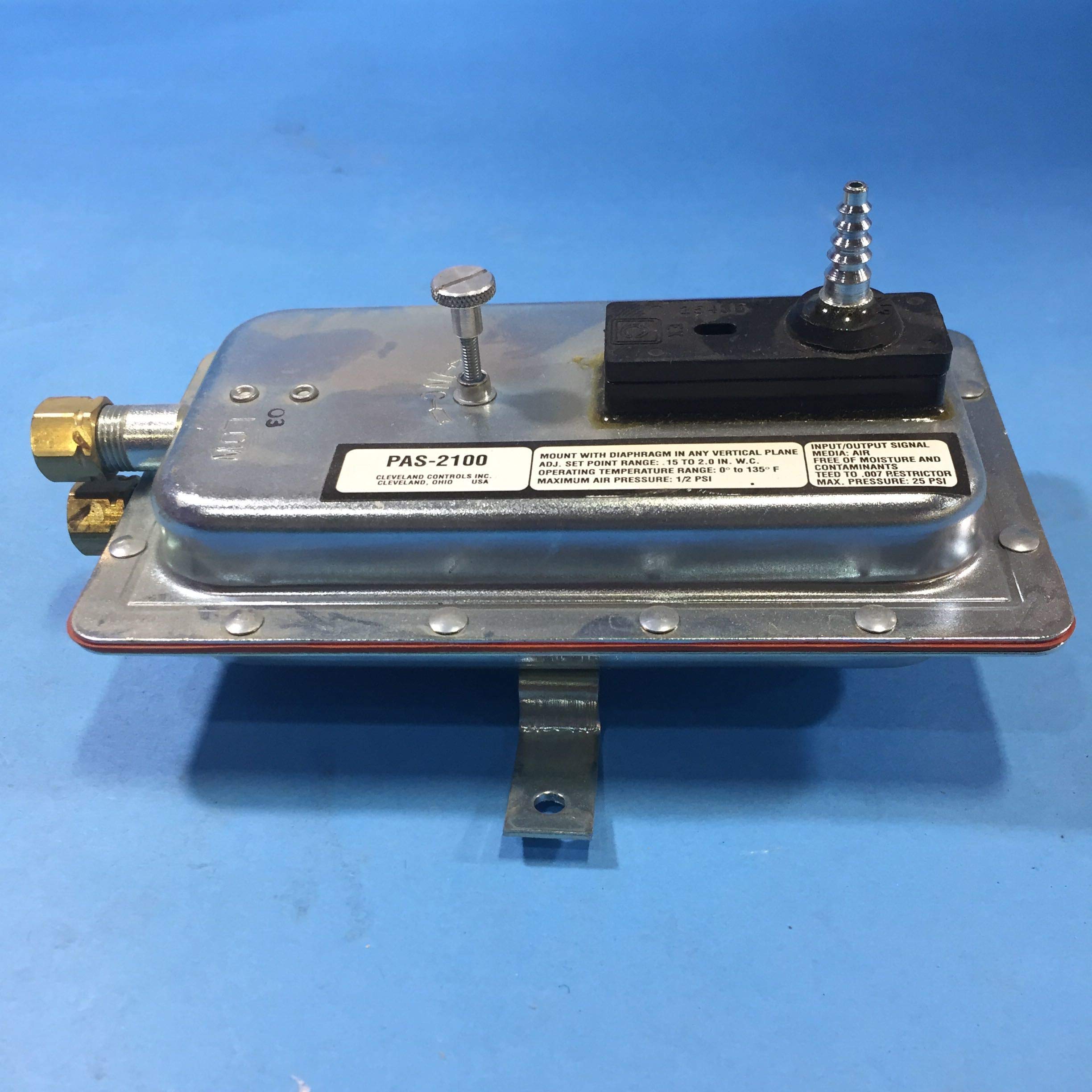 The Cleveland Controls PAS-2100 is a versatile pneumatic air sensor switch designed for precise air pressure monitoring within a range of 0.15 to 2.0 inches water column (WC). Ideal for industrial settings, this adjustable switch ensures optimal performance of pneumatic systems through reliable pressure regulation.