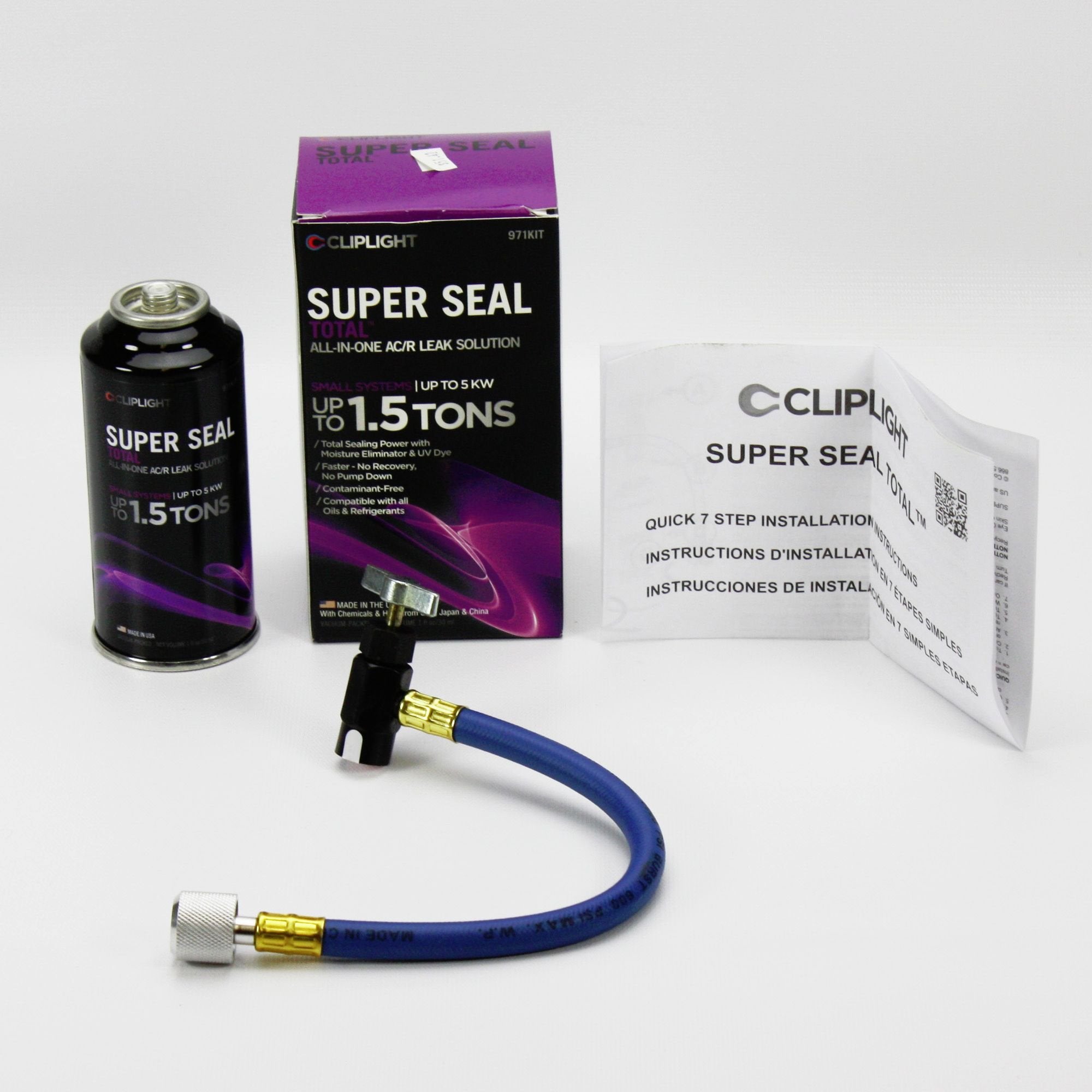 The Cliplight 971KIT Super Seal Total is a high-efficiency sealant designed for HVAC systems. This product effectively seals and repairs leaks in air conditioning and refrigeration systems.