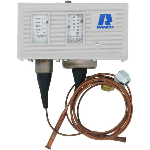 The Ranco O12-4834 is a dual function pressure control designed for air conditioning and refrigeration applications. It combines low pressure and high pressure functionality into one control. Key specifications include a low pressure range of ten to one hundred psi and a high pressure range of one hundred fifty to four hundred fifty psi.
