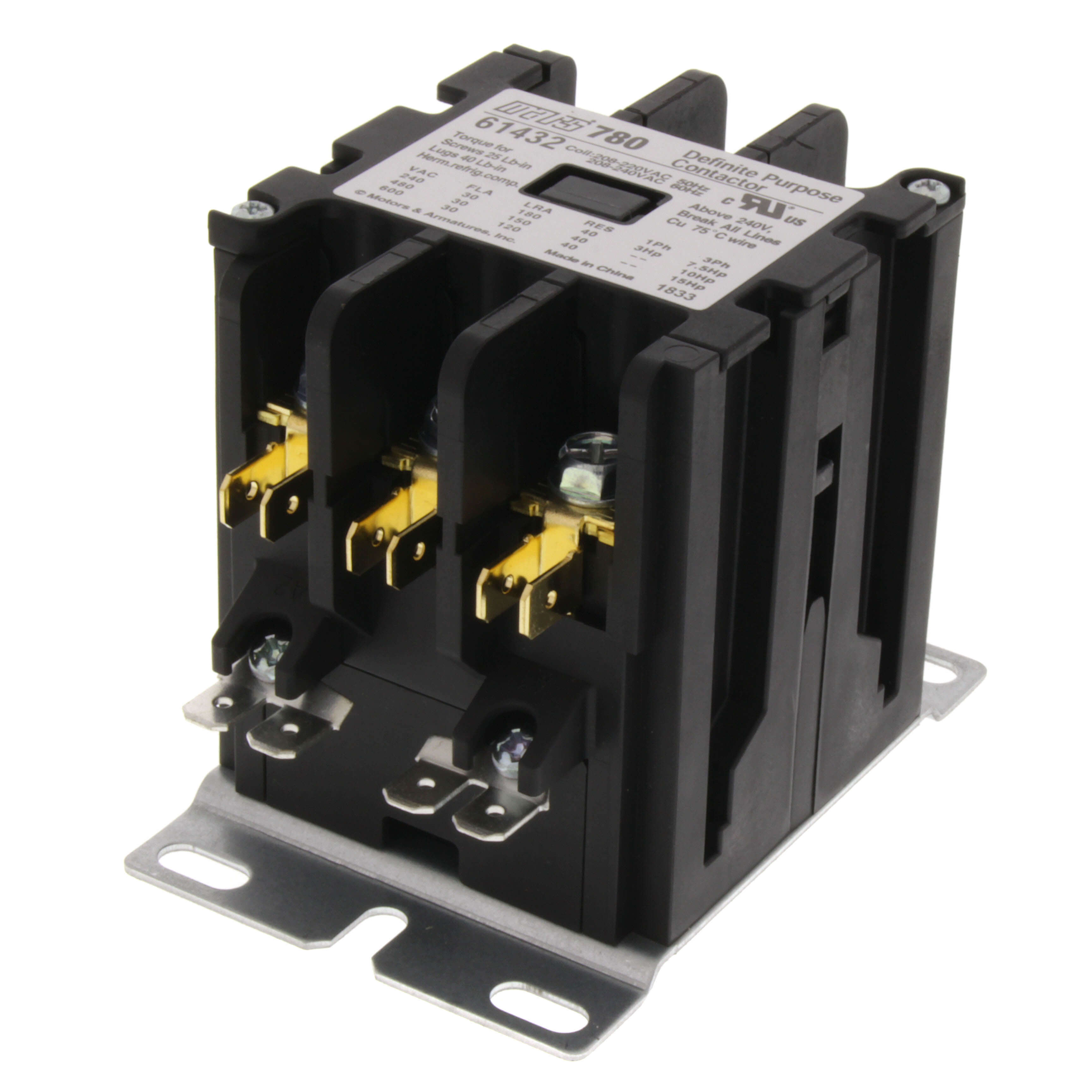 The MARS 30A 3-Pole Contactor with Screw Type Termination is designed for secure electrical connection and usage in demanding applications. With a coil voltage of 208 to 240 volts and a full load current of 30 amperes inductive, this contactor suits various electrical control needs.
