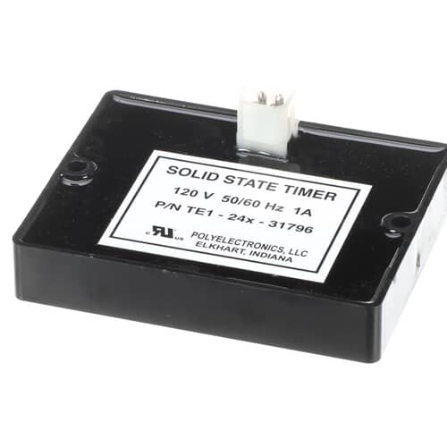 The Cornelius Control Timer Delay 120/60, MPN 638031796, is a solid-state time delay control designed for commercial appliances. It operates at 120 volts and fifty or sixty hertz for consistent performance in various applications.