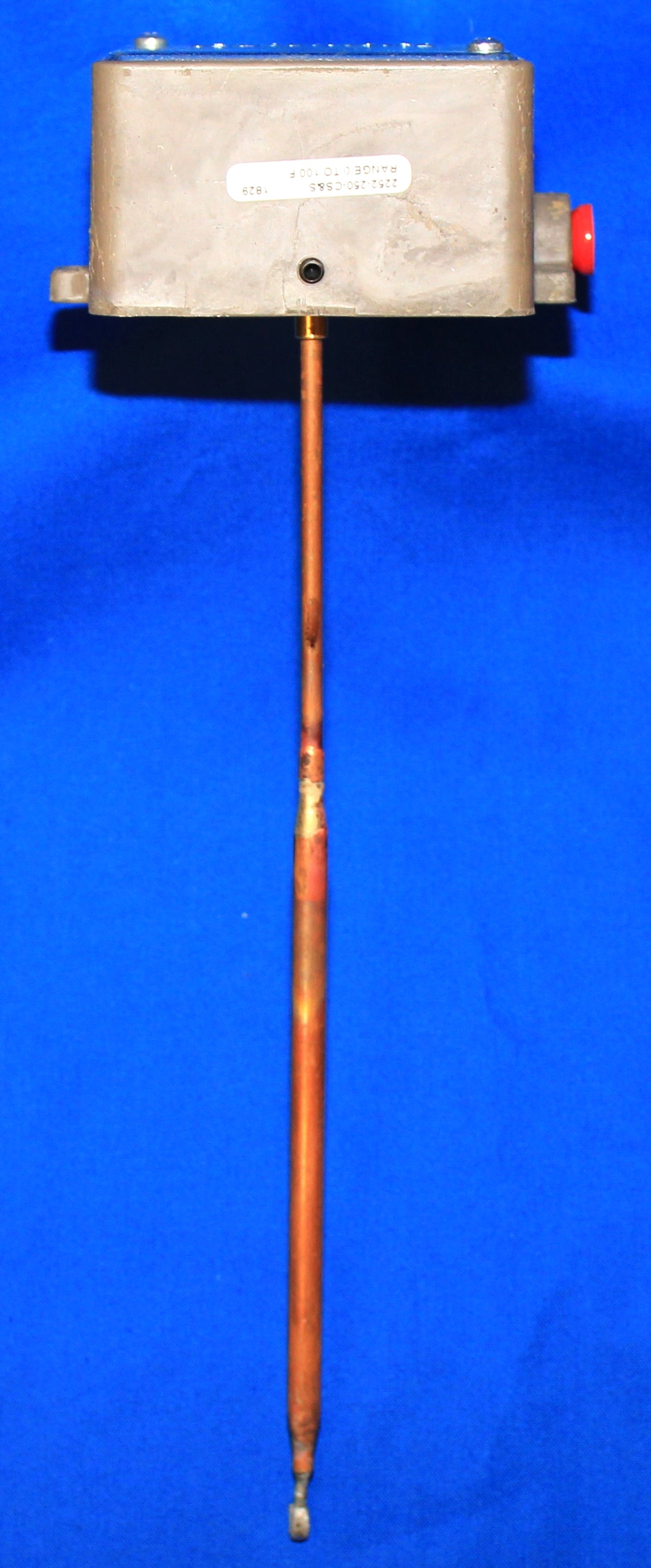 The Crandall 2252-250-CS&S is a pneumatic temperature transmitter designed for duct or immersion applications. It operates within a temperature range of zero to one hundred degrees Fahrenheit and transmits pneumatic signals from three to fifteen PSIG. The unit features a rigid element measuring one-fourth inch by nine and three-eighths inches.