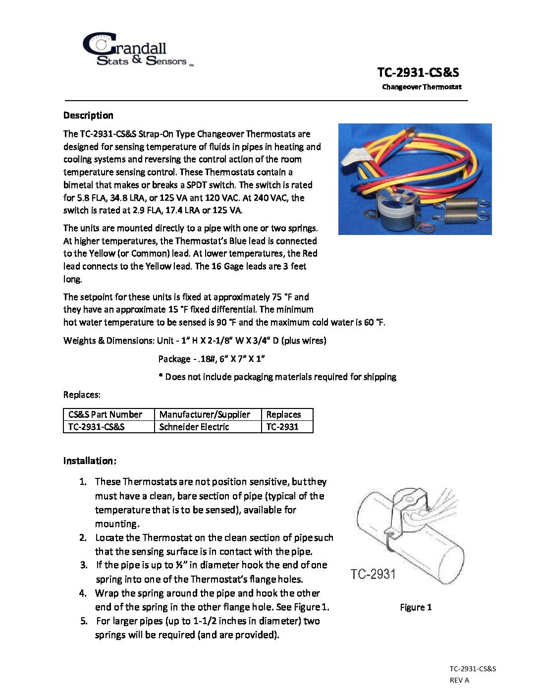 The Crandall TC-2974-CS&S is a strap-on thermostat designed for a variety of temperature control applications. This unit is easy to install and operate, making it suitable for HVAC professionals and electricians alike.