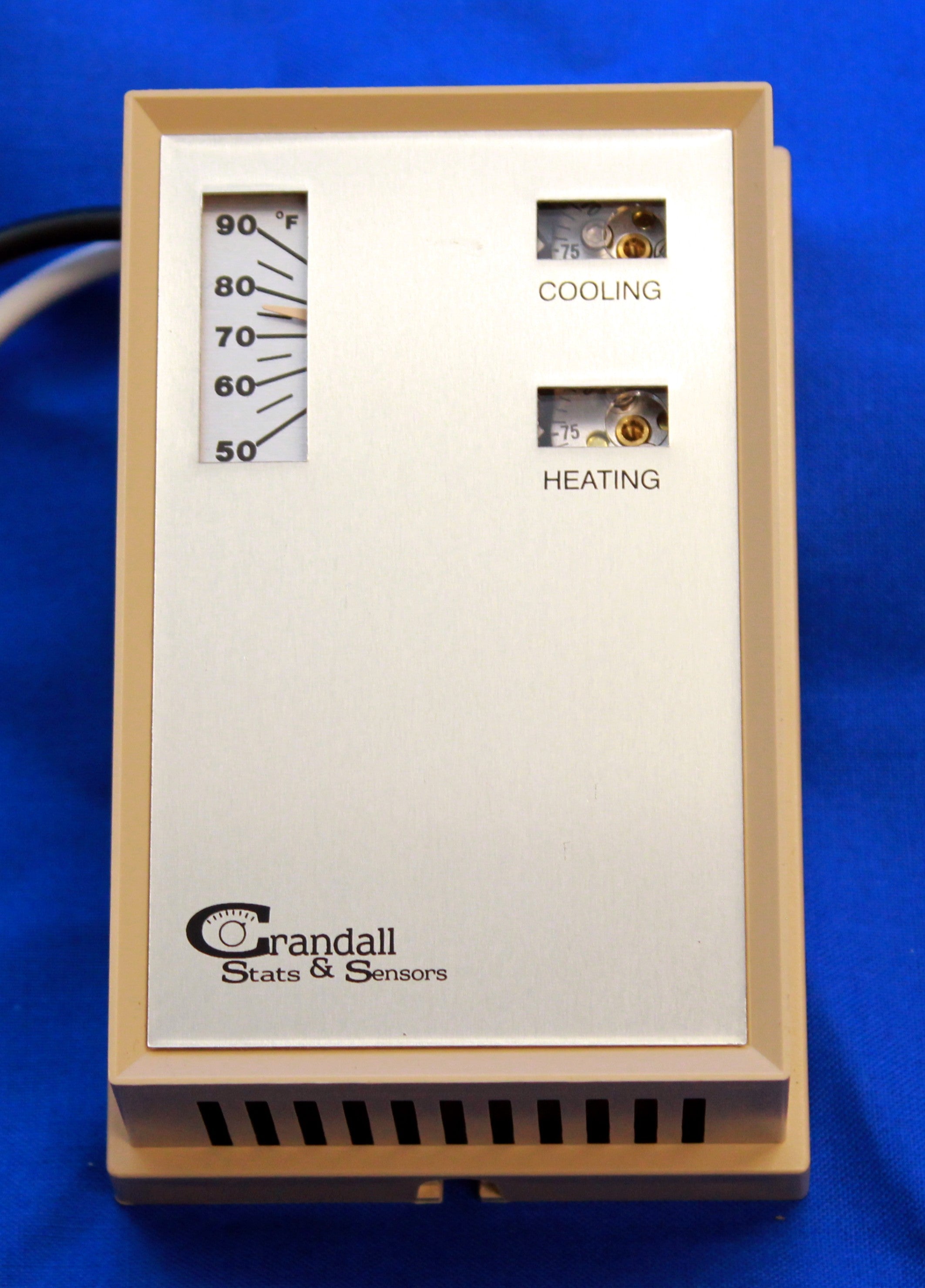 The Crandall TK-1811-CS&S is a pneumatic zero energy band room thermostat designed for reverse action control. Operating within a temperature range of fifty-five to eighty-five degrees Fahrenheit, this thermostat is built for reliable performance in various HVAC applications.