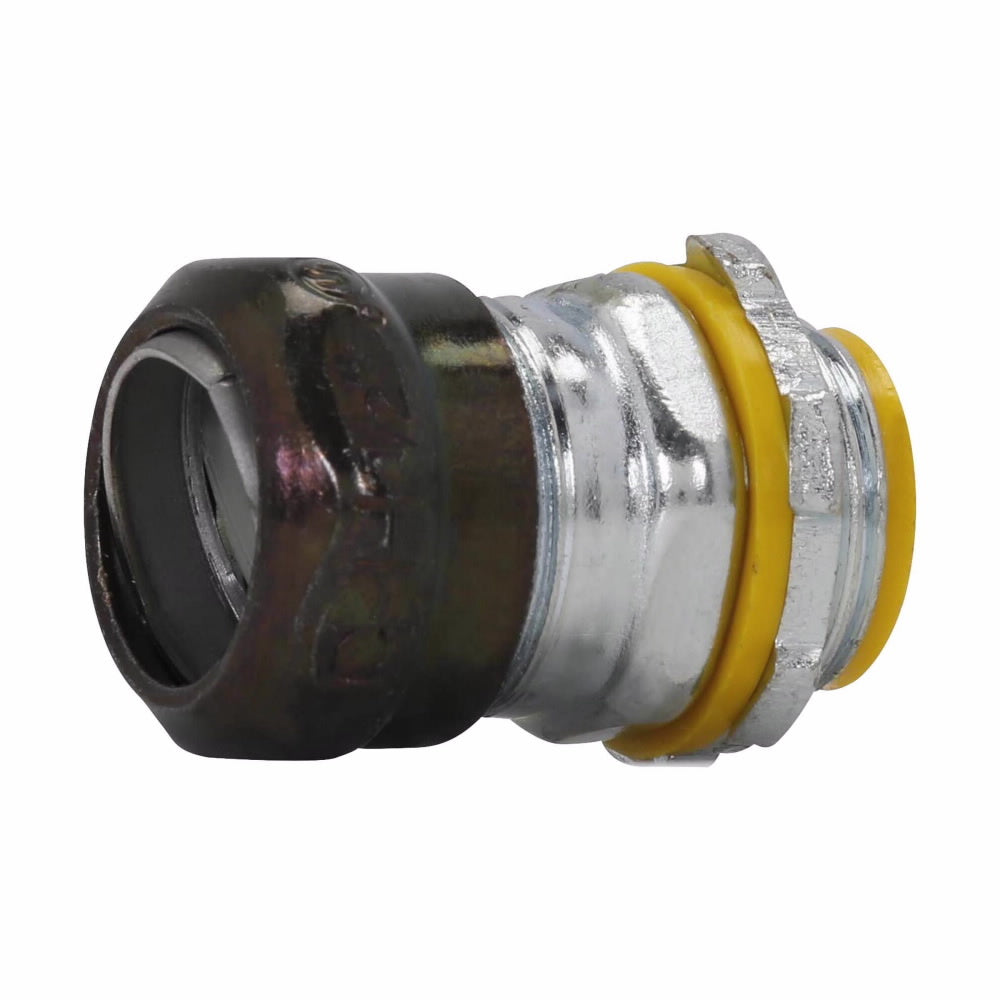 The Crouse-Hinds 1655RT is a compression connector designed for use in rain-tight environments. Made by Eaton, this connector is suitable for EMT conduit and is constructed from durable steel with a zinc-plated finish. It features an insulated design that prevents water seepage between conduit and enclosures.