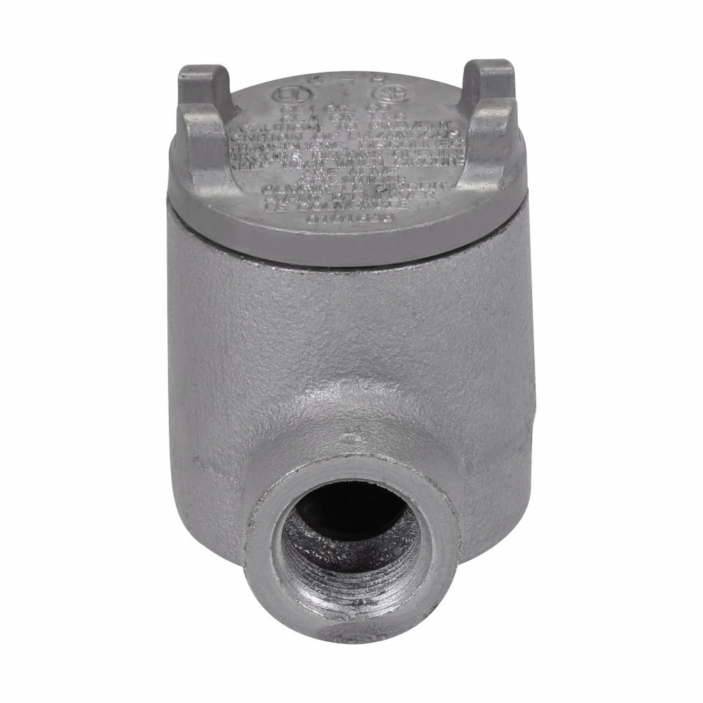 Crouse-Hinds GUAB14 Conduit Outlet Box serves as a protective housing for conductors in hazardous locations. This outlet box is suitable for use with threaded rigid conduit. Made from Feraloy iron alloy, it features a cover opening of two inches and a hub diameter of half an inch.