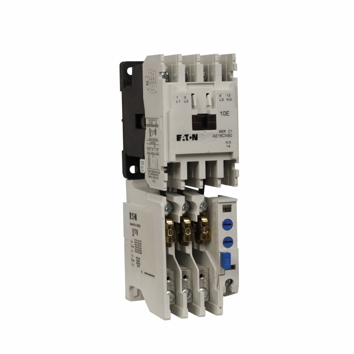 Experience streamlined motor control with the Eaton AE16CNS0AC IEC Open 3P Starter, specifically designed for size C with a 120V coil. This product enables precise motor operation and is ideal for replacement uses, adhering to rigorous international standards including UL and cUL certifications.