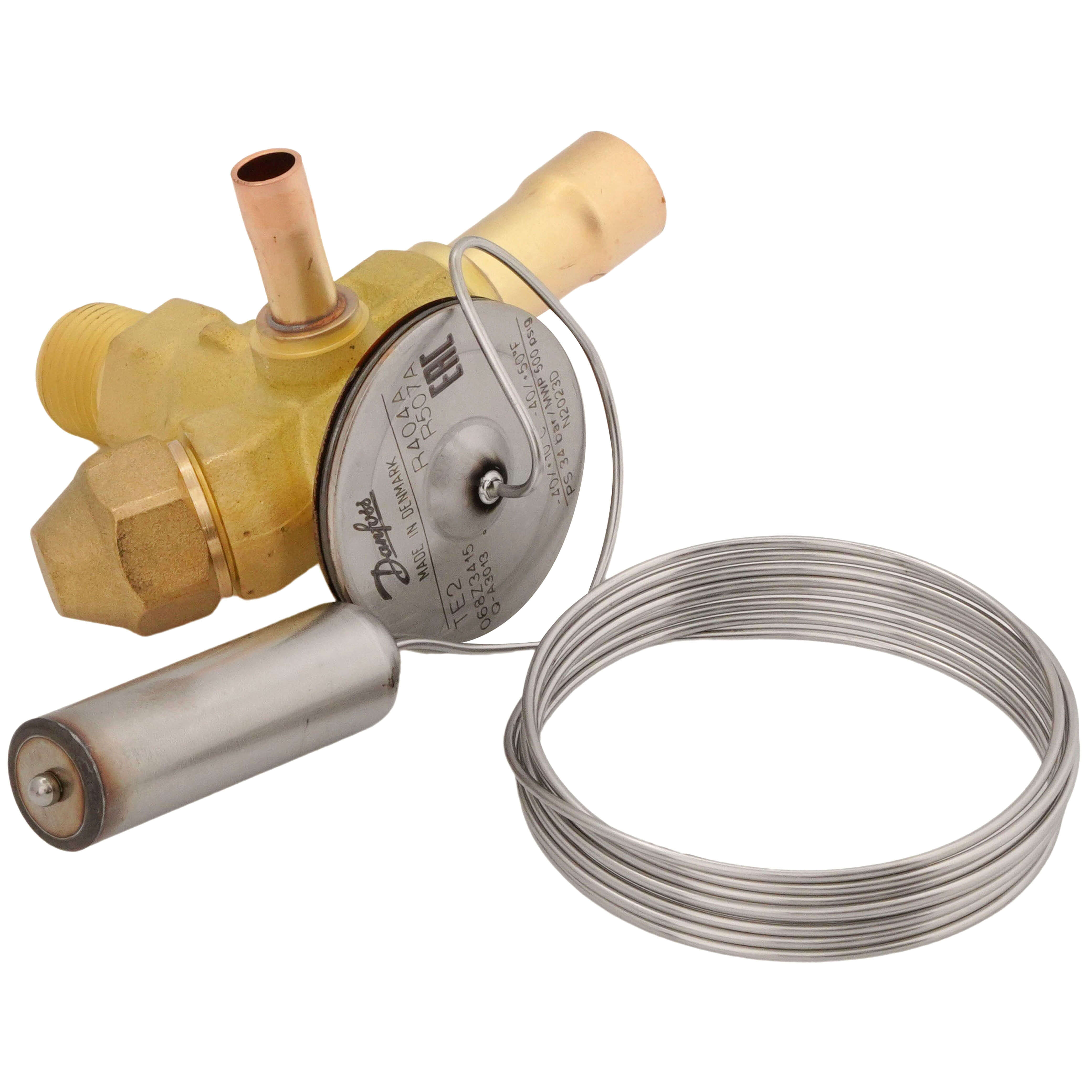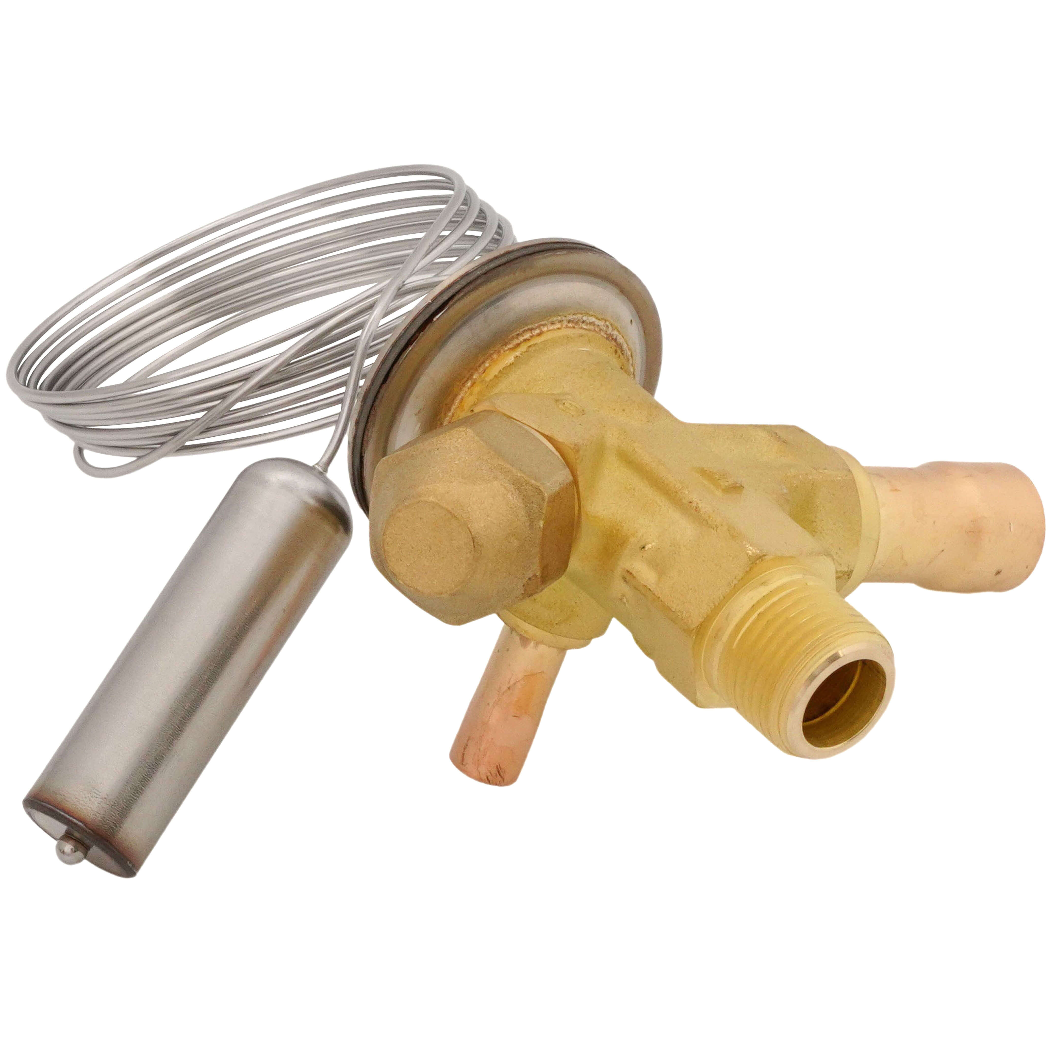 The Danfoss 068Z3415 Thermostatic Expansion Valve is engineered for effective refrigerant flow regulation in systems using R404A or R507A. It features a 3/8 inch solder inlet and a 1/2 inch outlet, both designed to ensure a secure, leak-proof connection with a five-foot external equalizer that enhances system responsiveness and control.