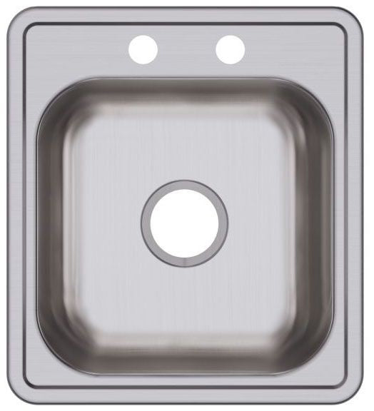 The Dayton D117192 is a drop-in kitchen sink designed for easy installation and functionality. This single bowl sink measures seventeen inches in length and nineteen inches in width, featuring two faucet holes. Made of 300 series stainless steel, it combines durability with a satin finish.