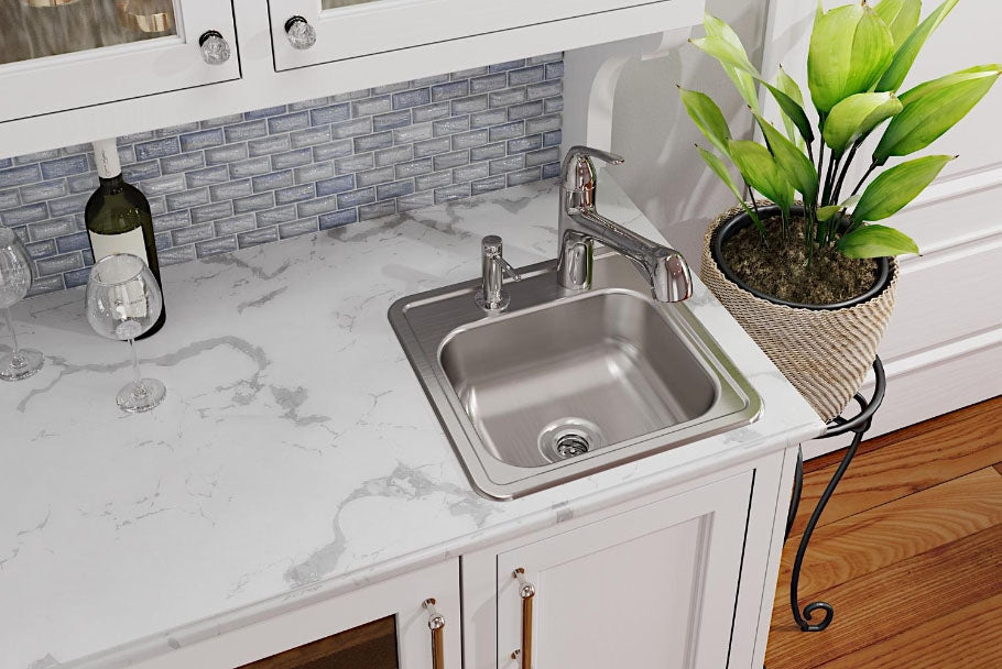 Explore the Dayton K115152, a robust stainless steel bar sink designed for both durability and functionality. Perfect for hospitality settings, this 15x15 inch sink integrates seamlessly into any bar counter with its drop-in mount system and satin finish.
