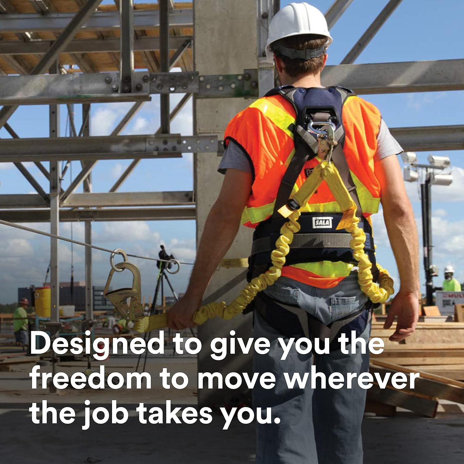 This lanyard is designed to enhance safety by limiting fall arrest forces. It is constructed with durable polyester webbing that resists abrasion. The lanyard stretches in response to user movements, making it more comfortable to use.