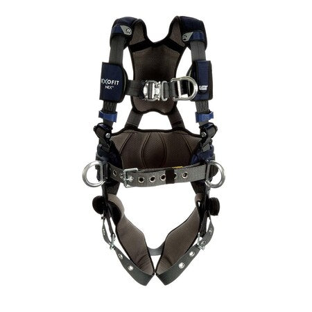 The 3M DBI-SALA ExoFit X300 Comfort Vest Safety Harness MPN 70804444753 is designed for optimal safety and comfort. This harness features a back D-ring connection and is available in size two times large. It is fitted with quick connect buckles for easy adjustments. The design incorporates an anti-sliding dorsal D-ring pad that minimizes sliding while you work. This feature enhances stability and performance, ensuring safe use in various applications.