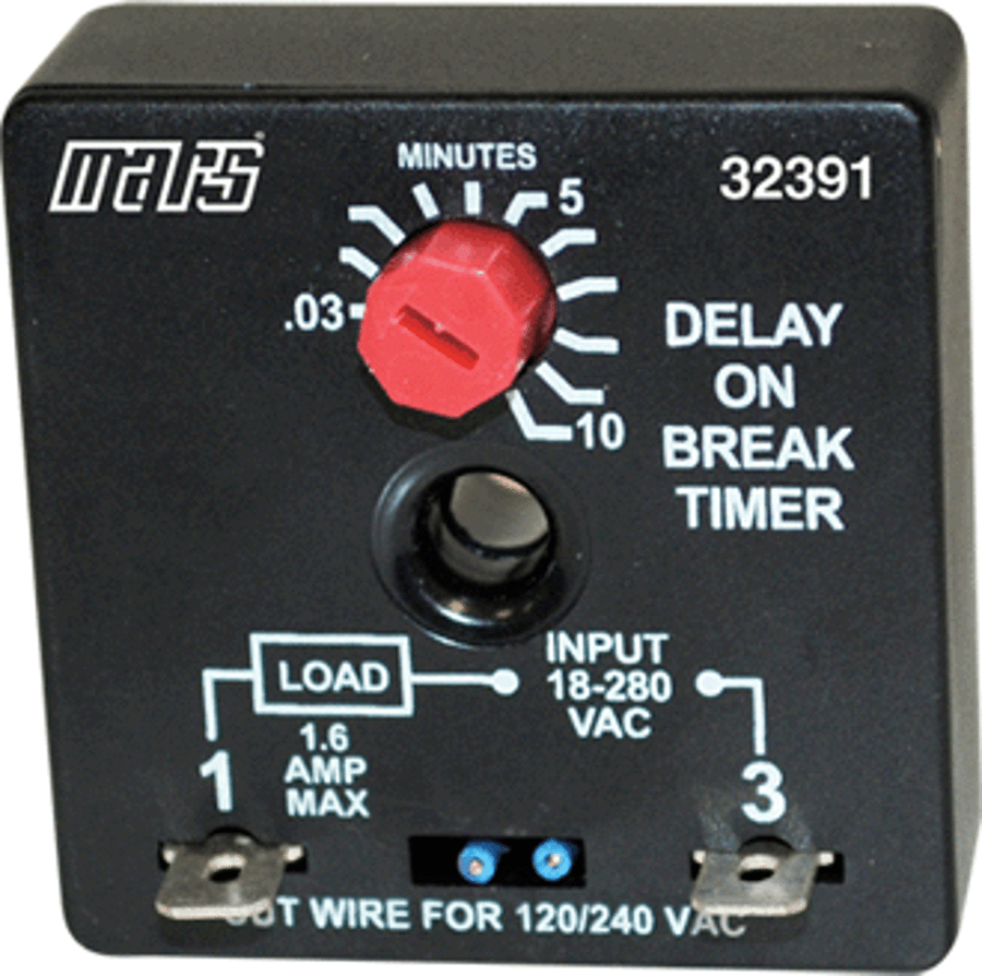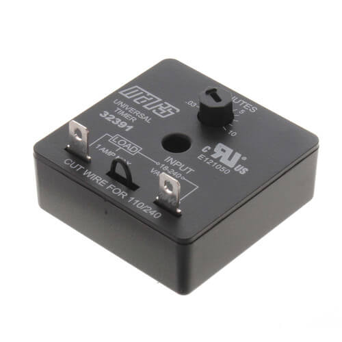 The MARS 32391 is a delay timer designed for reliable performance in HVAC applications. This unit operates at 240 volts and is suitable for use in both fifty and sixty hertz environments. The adjustable delay range is from point one minute to eight minutes, providing flexibility to meet various system requirements.