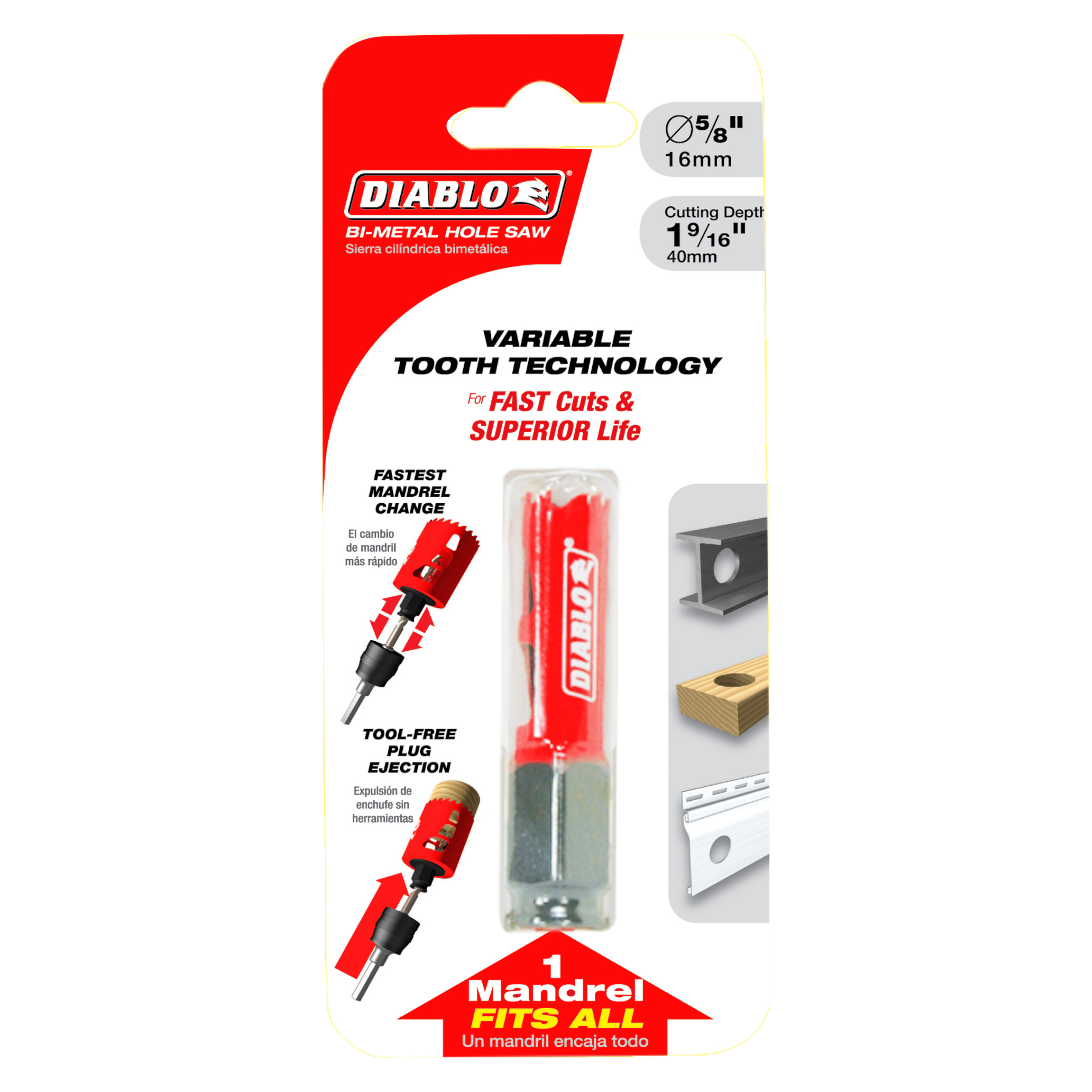 Experience precise and efficient cutting with the Diablo DHS0625 5/8 Inch Hole Saw Snap-Lock Plus Mandrel System. Engineered for professional use, this tool from Diablo enhances workflow with its innovative design.