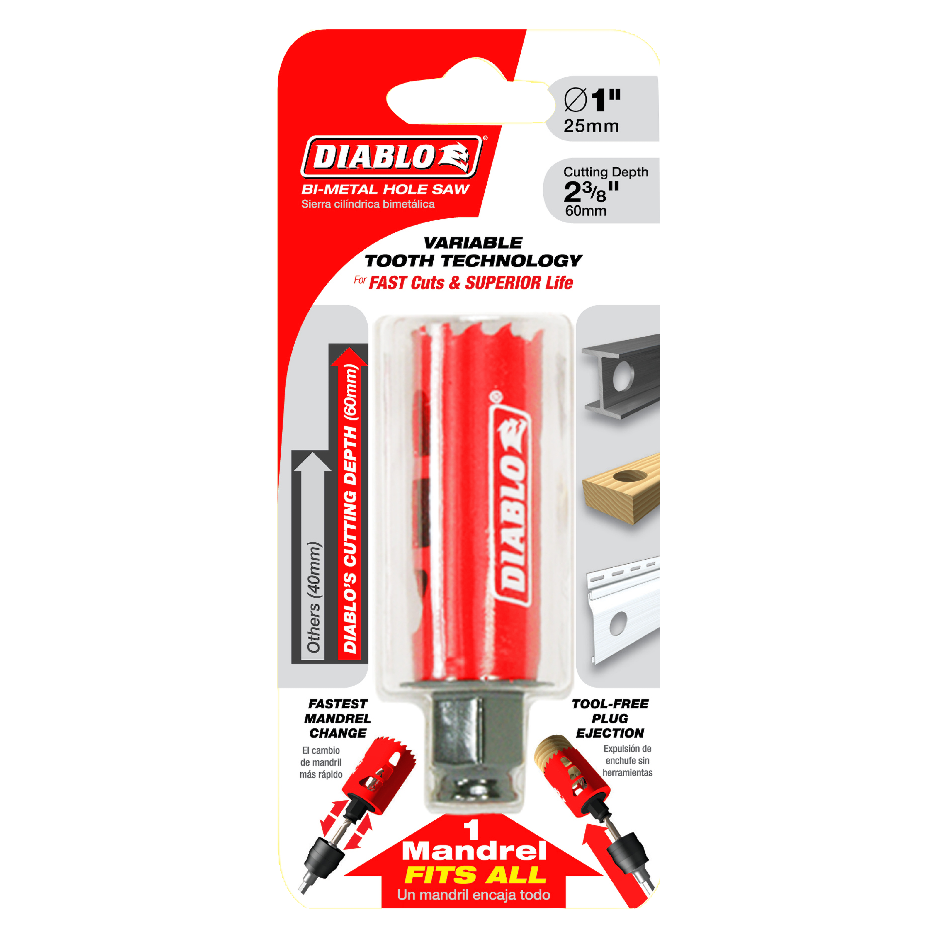 The Diablo DHS1000 Hole Saw features a unique Snap-Lock Plus mandrel system designed for quick, tool-free hole saw changes, enhancing efficiency and reducing downtime. This one-inch hole saw is manufactured by Diablo, a leading brand in cutting tools, ensuring high-quality and durability. Ideal for professional and trade use, this hole saw offers precise and clean cuts for various materials.