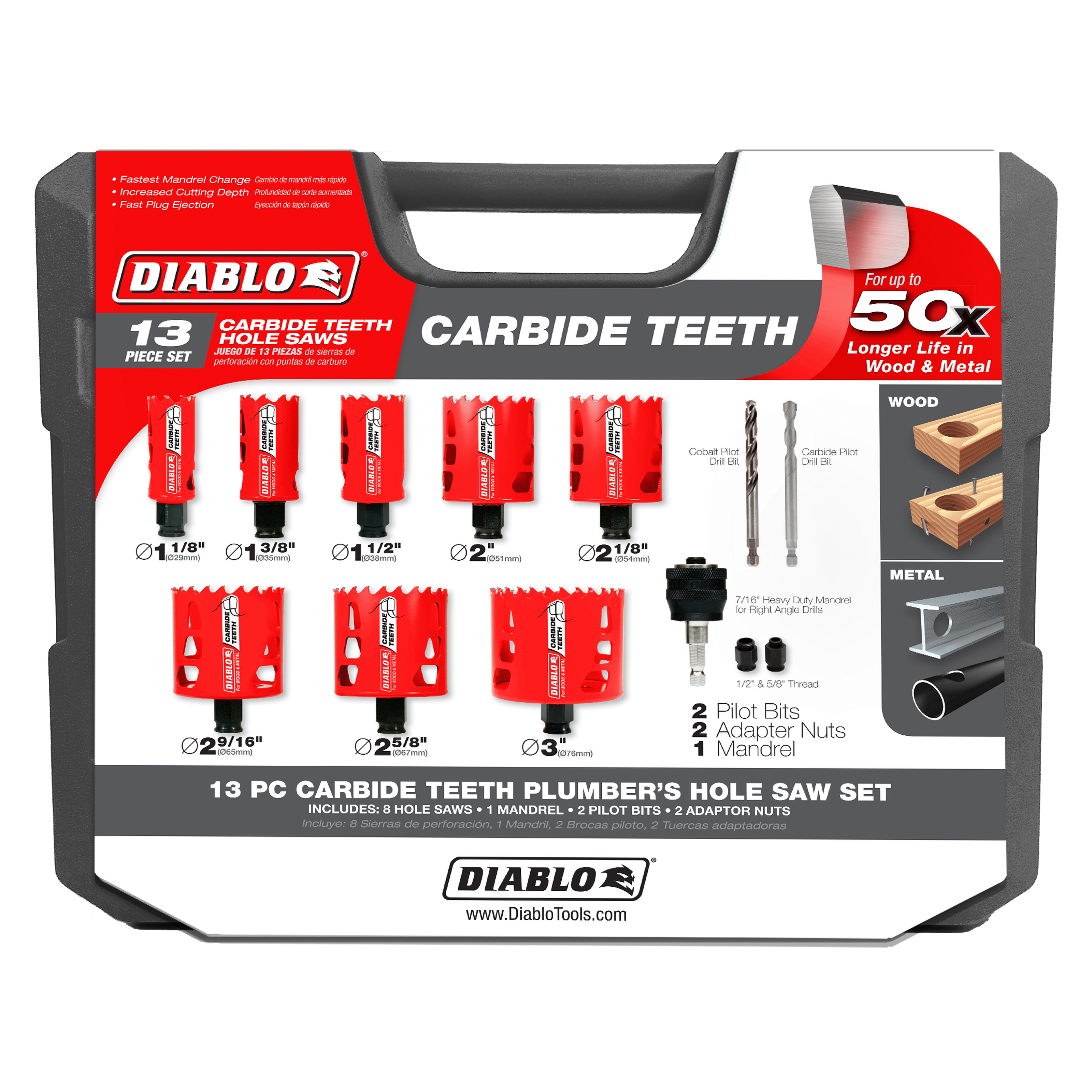 The Diablo DHS13SPLCT is a 13-piece carbide hole saw kit designed for professional plumbers. This kit features the innovative SnapLock Plus mandrel system allowing for quick and effortless changes, minimizing downtime and enhancing productivity.