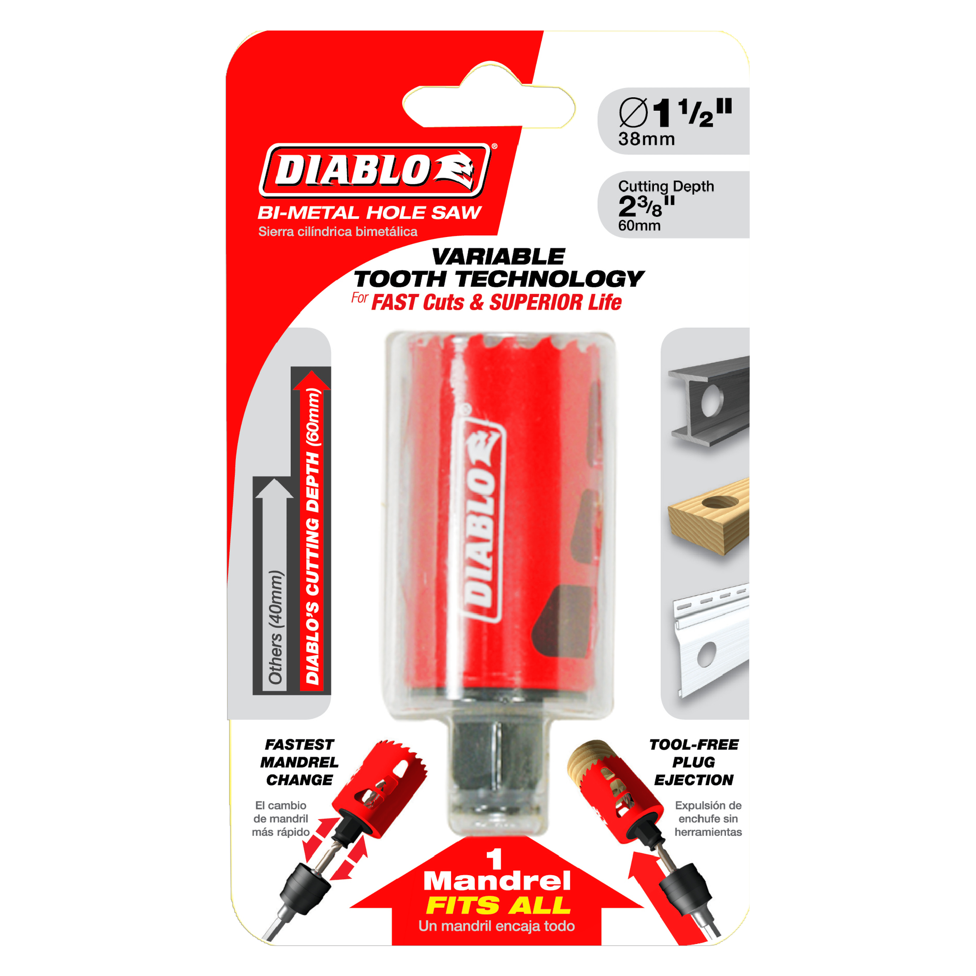 The Diablo DHS1500 1-1/2 Inch Bi-Metal Hole Saw with Snap Lock Plus Mandrel System is designed for professionals seeking efficiency and precision. This versatile hole saw is ideal for a range of materials including wood, plastic, aluminum, metal, and stainless steel.