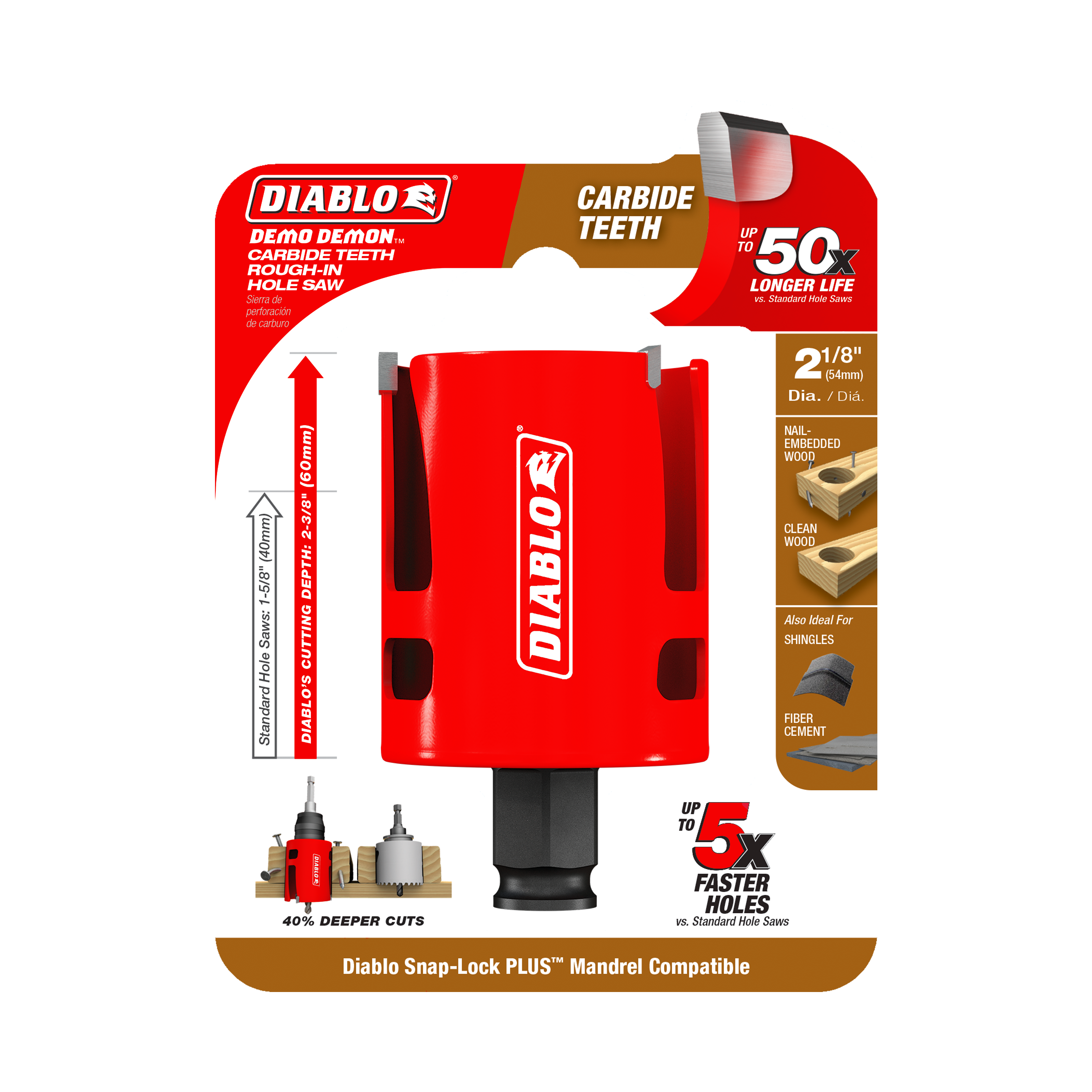 This versatile hole saw can handle nail-embedded wood, clean wood, shingles, and fiber cement. It is compatible with Diablo's SnapLock PLUS mandrel for efficient cup changes.
