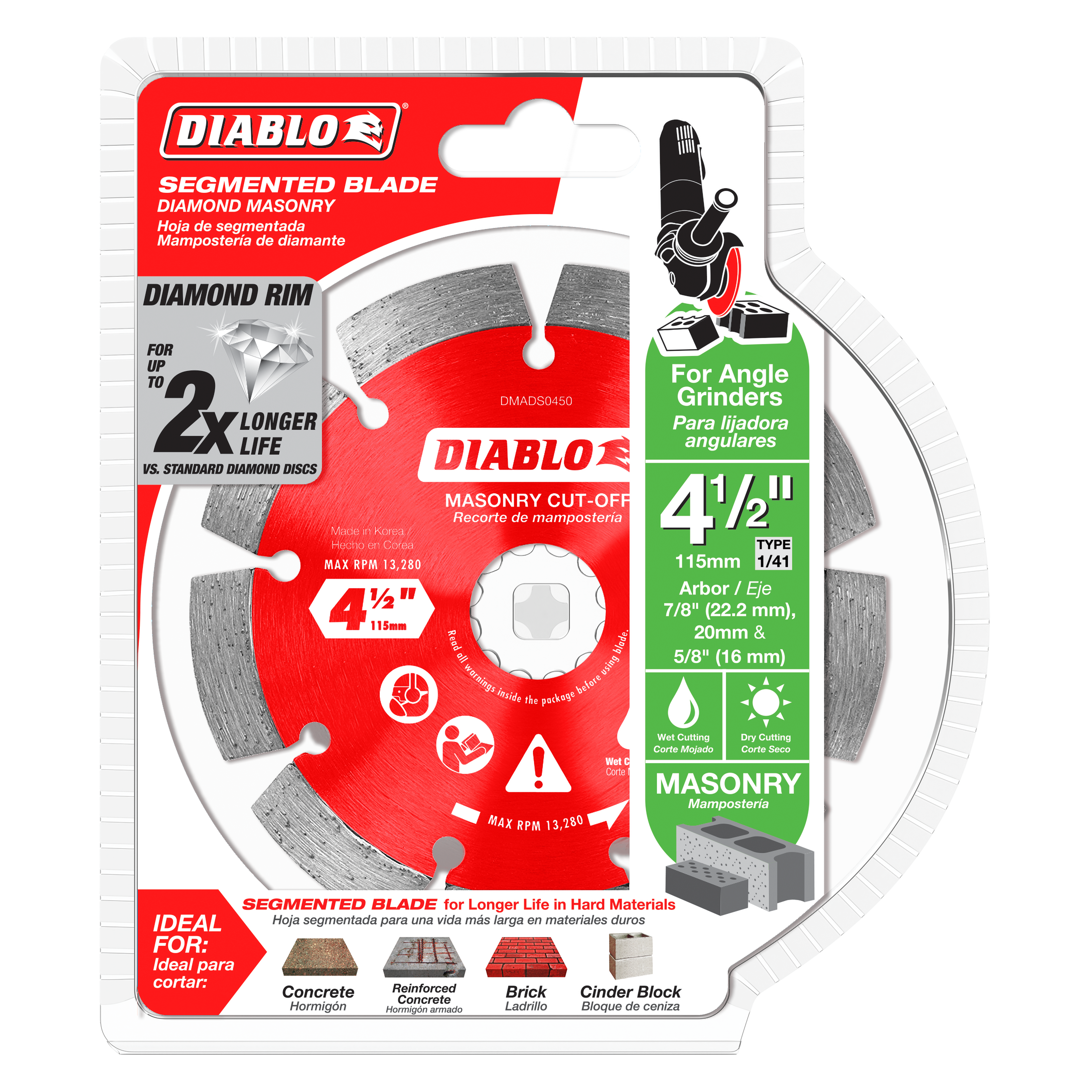 Designed for durability and precision, the Diablo DMADS0450 4-1/2 inch Diamond Segmented Masonry Cutting Disc is your essential tool for masonry cutting. With optimized diamond segments and an industrial-grade diamond distribution, this disc ensures consistent high-performance and a long lifespan.