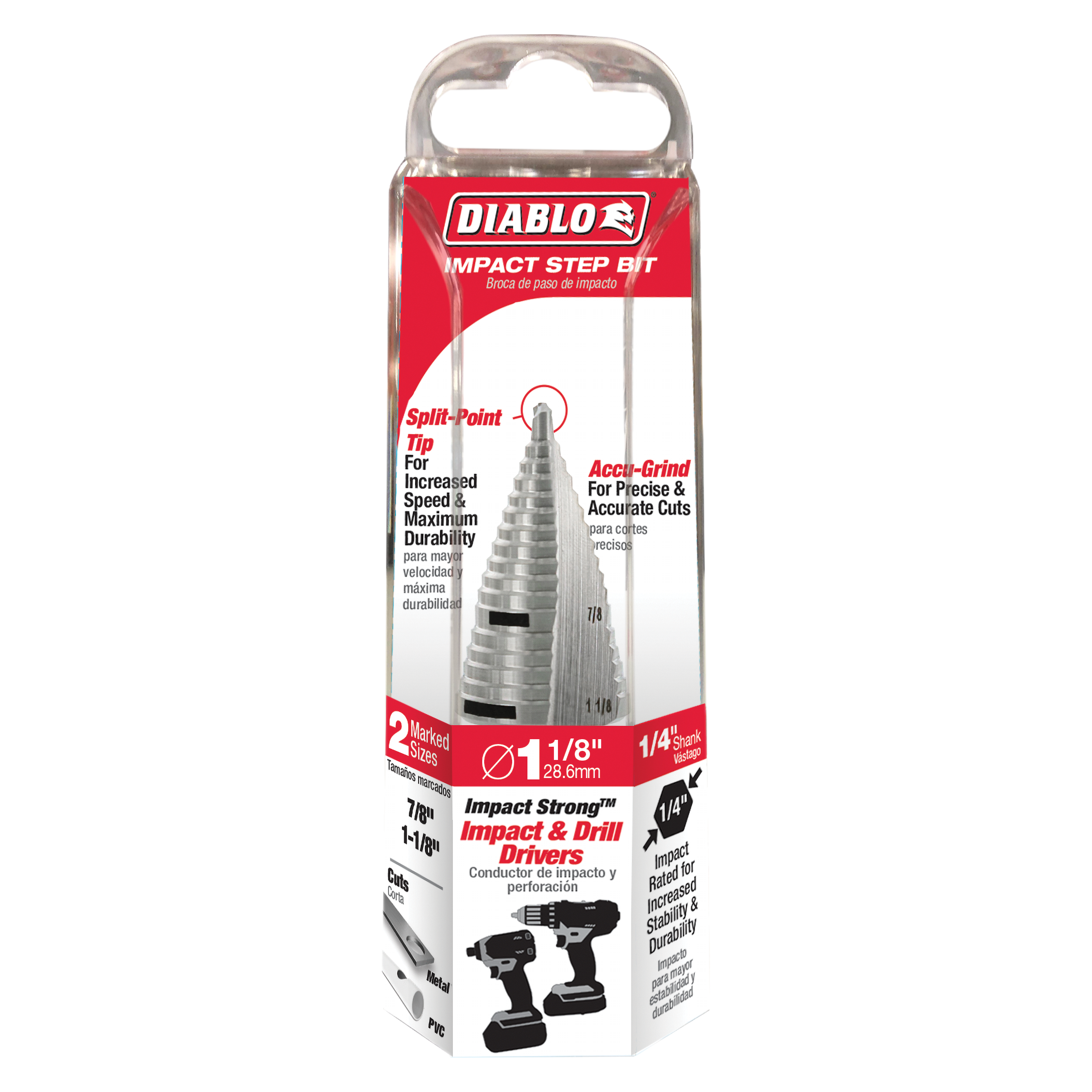 Diablo DSD1125S17 17 Steps Impact Step Drill Bit is precision engineered for high-performance in metal, PVC, and other plastic materials. Its optimized dual flute design prevents jamming and ensures efficient drilling.
