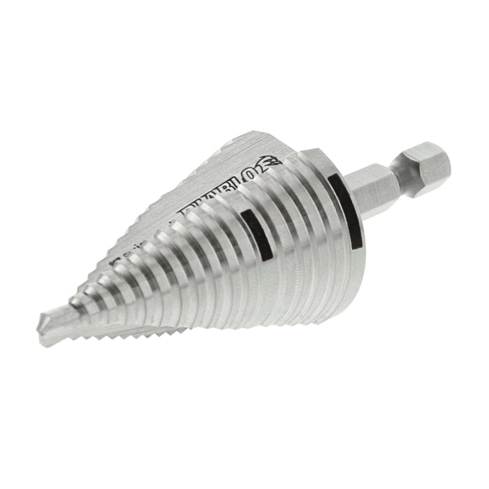 - Laser-marked step sizes for quick and accurate hole sizing.