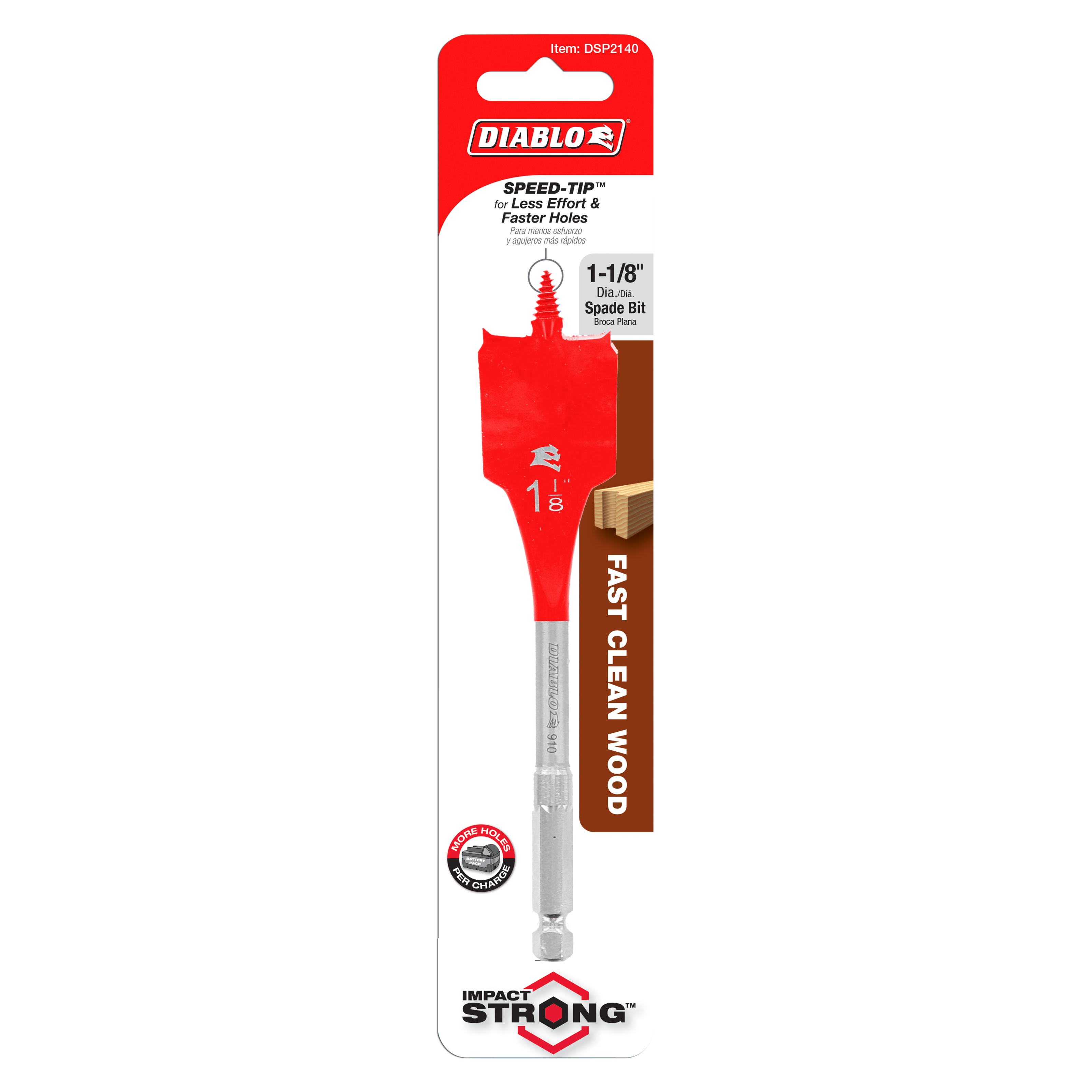 The Diablo DSP2140 1-1/8 in. x 6 SPEEDemon Spade Bit offers fast and effortless hole drilling in wood. This spade bit features a high-performance SPEED-TIP design, which self-feeds for faster hole-making compared to traditional spade bits.